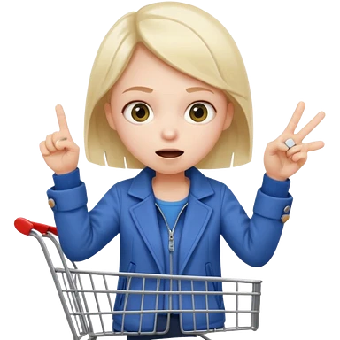 impulsive shopper: tiny face with excited eyes, finger on ‘buy’ button, small fast shopping cart with motion lines emoji