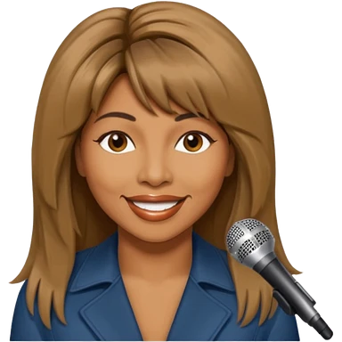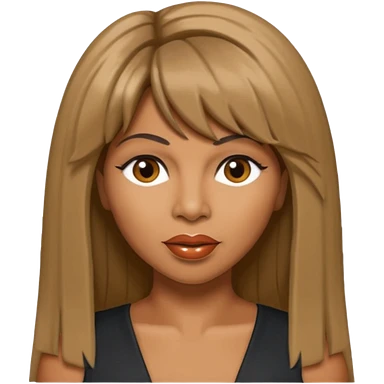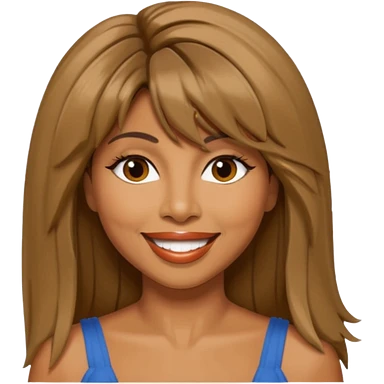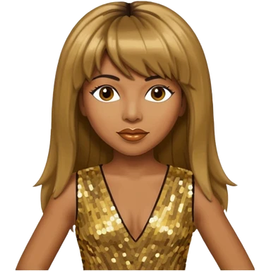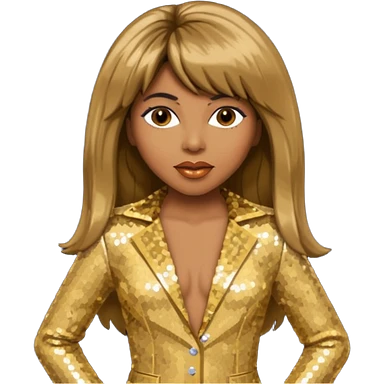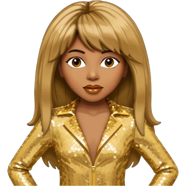 Tina Turner with long brown straight hair, gold sequin outfit emoji
