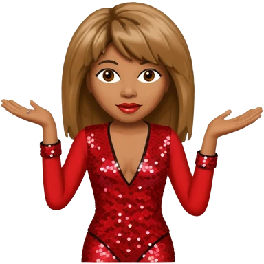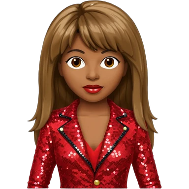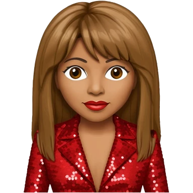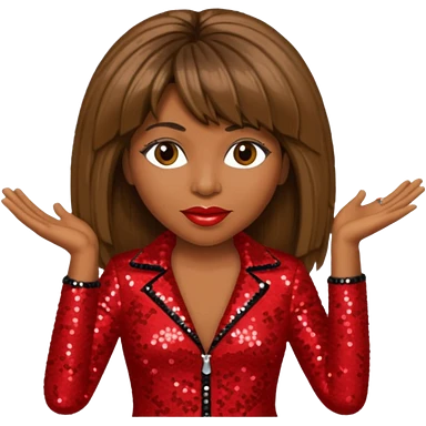 Tina Turner with long brown straight hair, red sequin outfit emoji