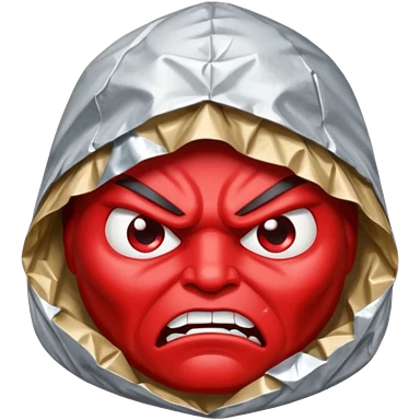 tin foil hat with angry face emoji