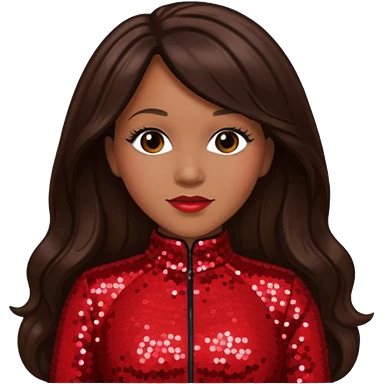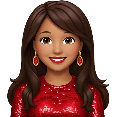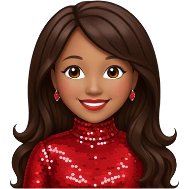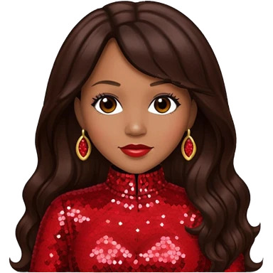 Erica Campbell from Mary Mary with long dark brown hair, red sequin outfit emoji