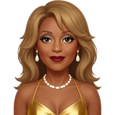 Tina Turner with long golden brown hair, gold metallic dress emoji