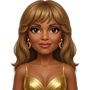 Tina Turner with long brown straight hair, gold sequin outfit emoji