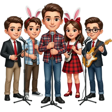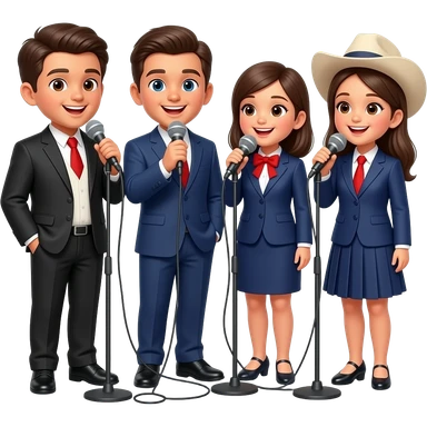 Tinbiriche 3. niños. Y 2. Niñas porles. Los. Trajes porles. Sus. Intrunmetos. Y los. Microfonos. Y. Cantan. Mentira. Haora. Esta. Kapi. Una. Mujer. Animados. Ellos. Crecieron. Con micki emoji | AI Emoji Generator