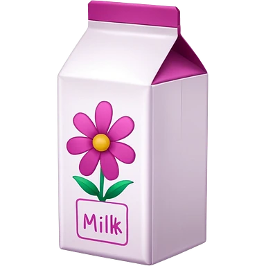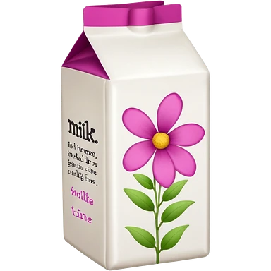 a white TINE milk carton with magenta trim border and magenta text that says "MILK", with tiny magenta flower blossoms doodles on it emoji