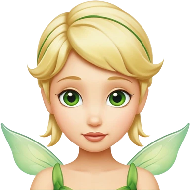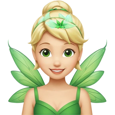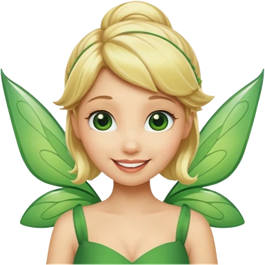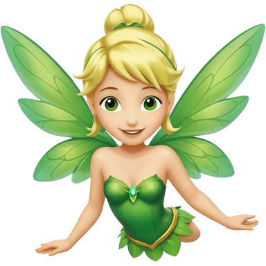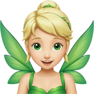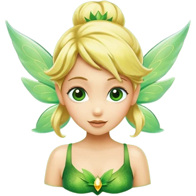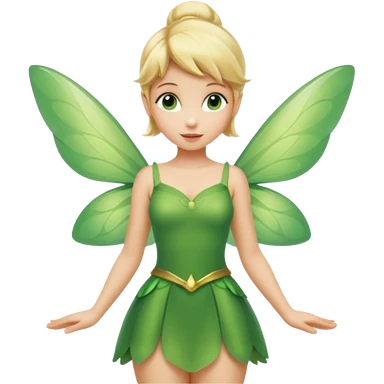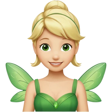 Tinkerbell fairy from hips up, green dress, blonde hair, wings, minimal style, larger size emoji