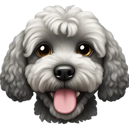 Smiling gray maltipoo with black ears and dark fur on eyes emoji
