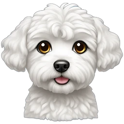 White fluffy maltipoo wearing LA Rams football uniform emoji