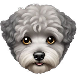 Smiling gray maltipoo with black ears and dark fur on eyes emoji