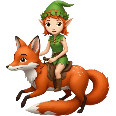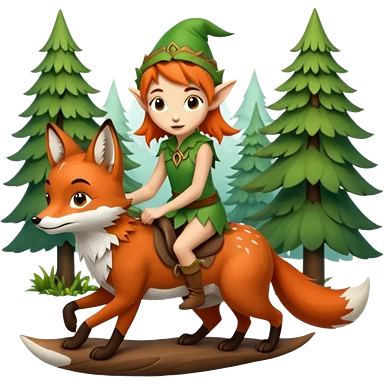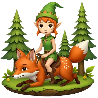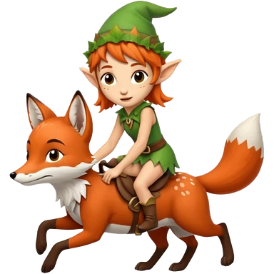 tiny forest elf with freckles riding fox emoji