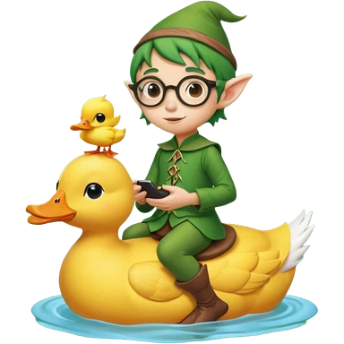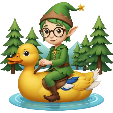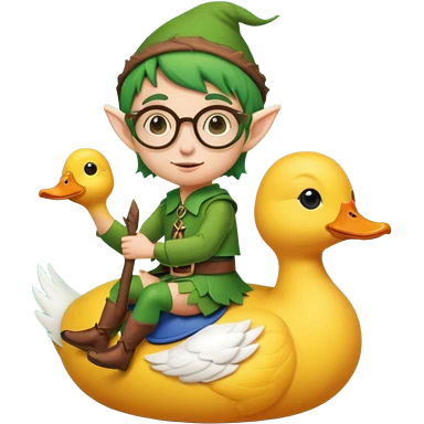 tiny forest elf blode hair with round glasses riding a duck emoji