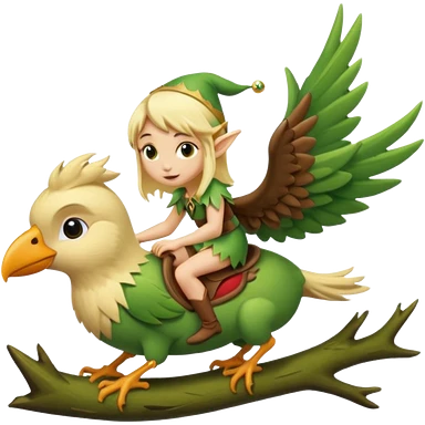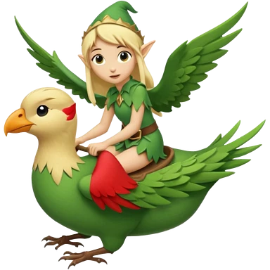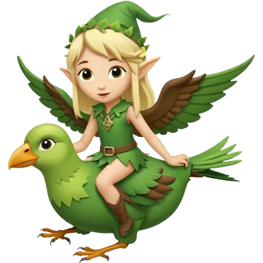tiny forest elf blonde hair riding bird emoji