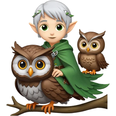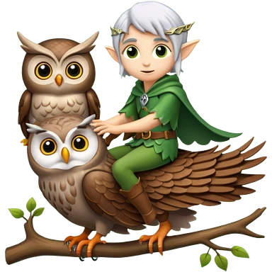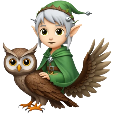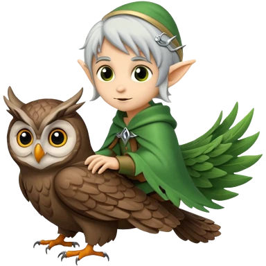 tiny forest elf with silver hair riding owl emoji