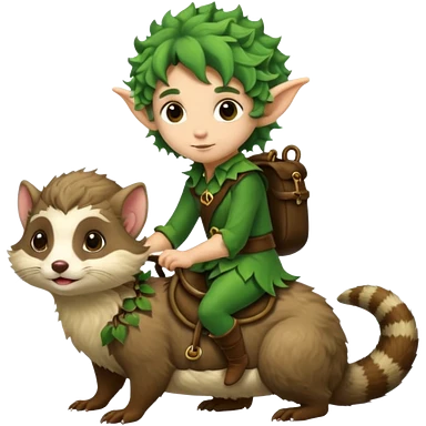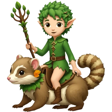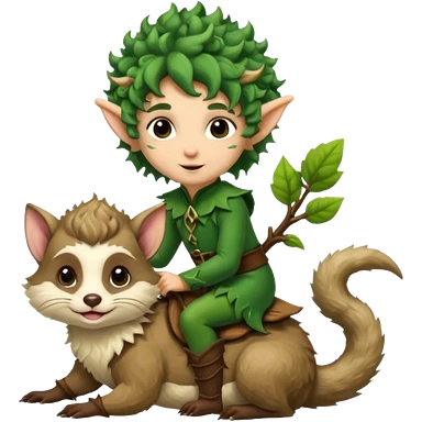 tiny forest elf with messy curls riding ferret emoji