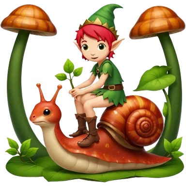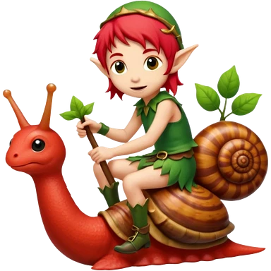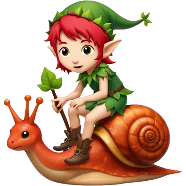 tiny forest elf with red hair riding snail emoji