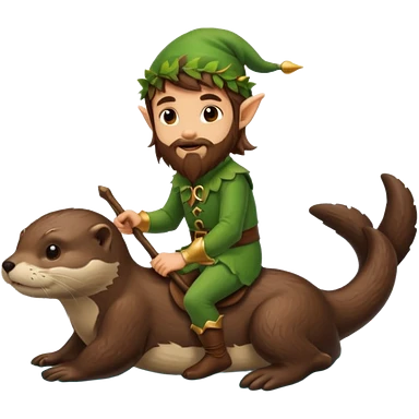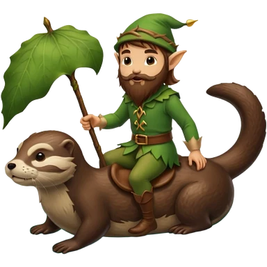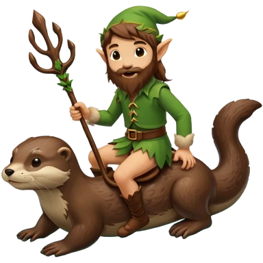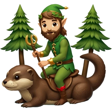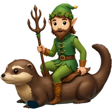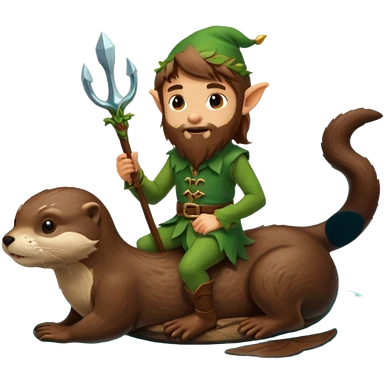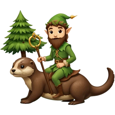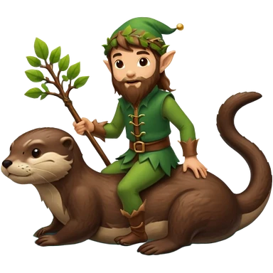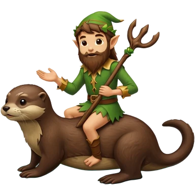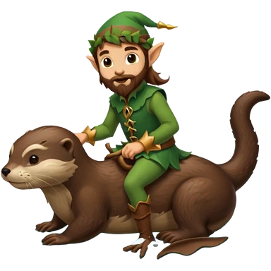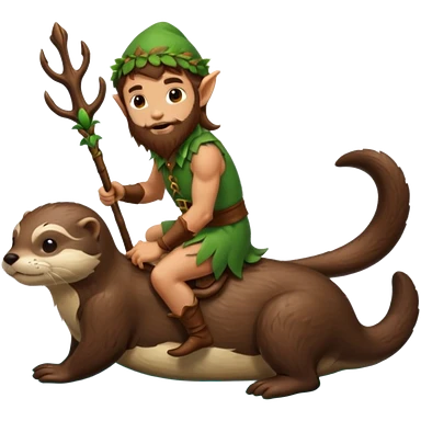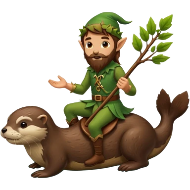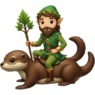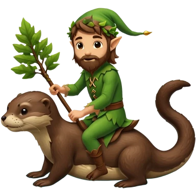 tiny forest elf man long brown hair beard riding an otter emoji