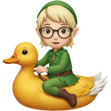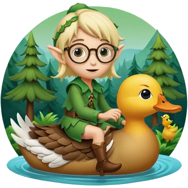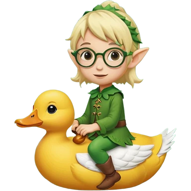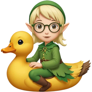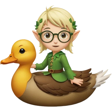 tiny forest elf blode hair with round glasses riding a duck emoji