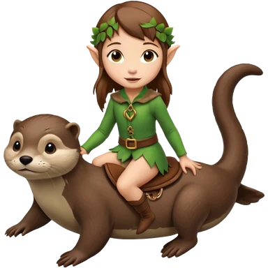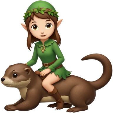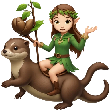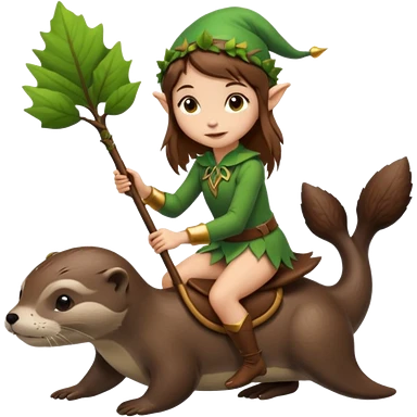 tiny forest elf girl brown straight hair with riding an otter emoji