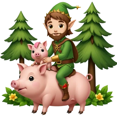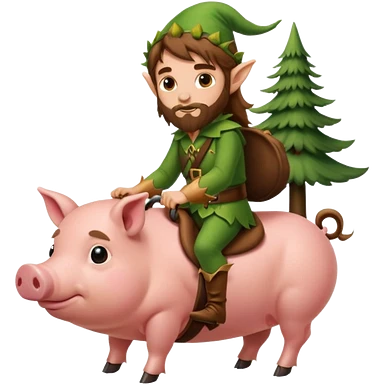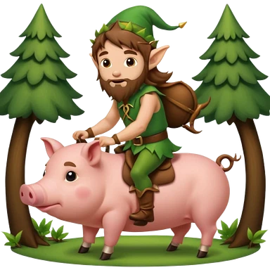 tiny forest elf man long brown hair beard riding baby pig emoji