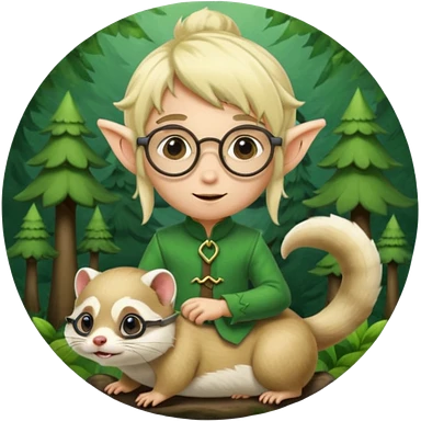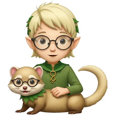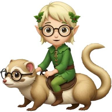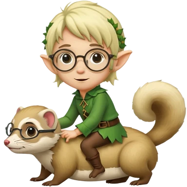 tiny forest elf blode hair with round glasses riding a ferret emoji