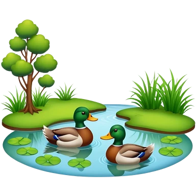 A pond is a small, still body of water—usually smaller than a lake—often shallow enough for sunlight to reach the bottom in most areas. It can be natural, formed by springs or rainfall collecting in a low area, or man-made, like a farm or garden pond. emoji