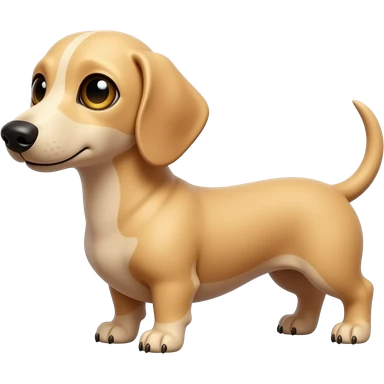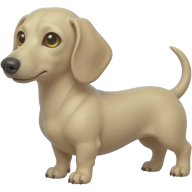 A thin miniature dachshund with a narrowed snout, a pink nose, a cream coat, and gold eyes emoji