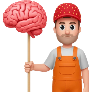 A guy with red hat and orange overalls and more and with some 3D skippity sentence brain rod and more and crazy little strawberry Red Crimson hat emoji