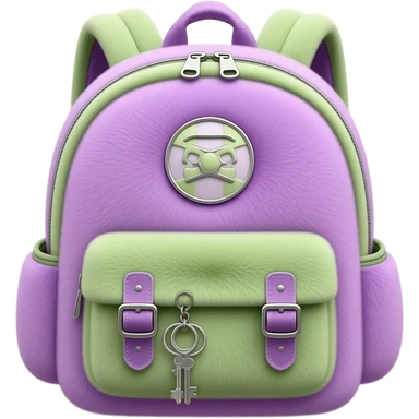 soft purple green school backpack Plush keychain frame, transparent background inspired by barbie colour pallete emoji