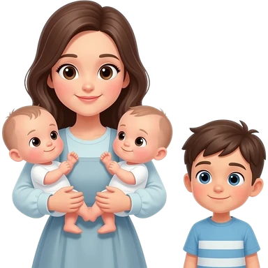 tired caucasian mother with brown hair, , holding one newborn baby emoji