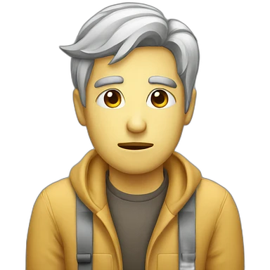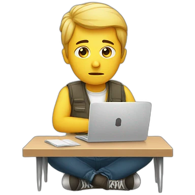 programmer holding his head, tired, bruises under his eyes, with a laptop emoji