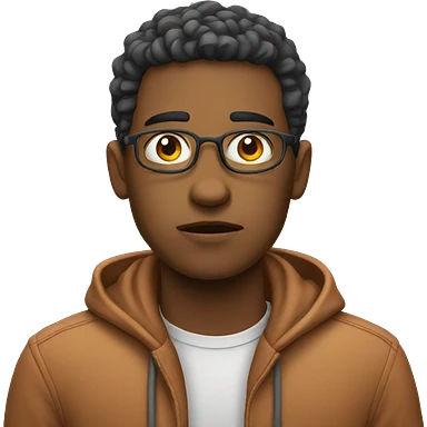 tired student with red eyes, messy hair, dazed expression, holding a joint emoji