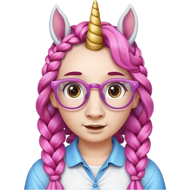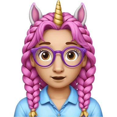 braided unicorn wiith big visible braids looking into the camera spectacled emoji