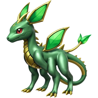 Shiny 4-legged Electrike-Rayquaza-Flygon-Virizion-Zygarde-Leafeon-fusion, full body emoji