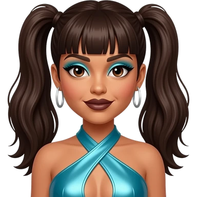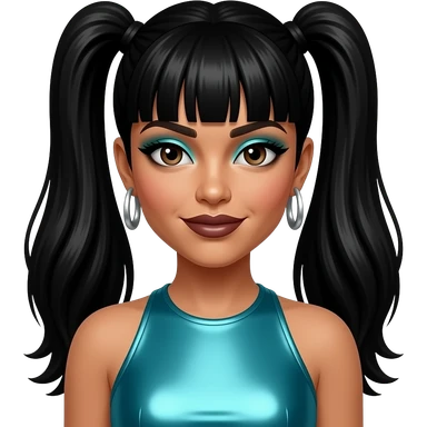 TLC with with Left Eye with brown skin and eyes, black two ponytail hair, cyan metallic crop top and baggy pants, Chilli with brown skin and eyes, long black hair, yellow metallic crop top and baggy pants, T-Boz with brown skin and eyes,short blonde hair, red metallic crop top and baggy pants emoji | AI Emoji Generator