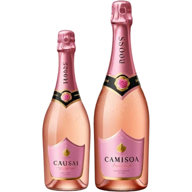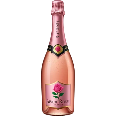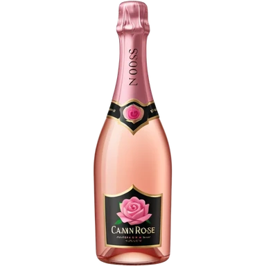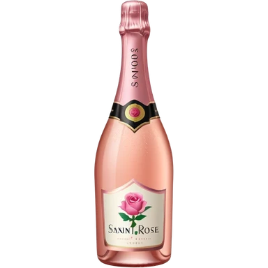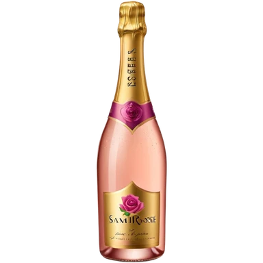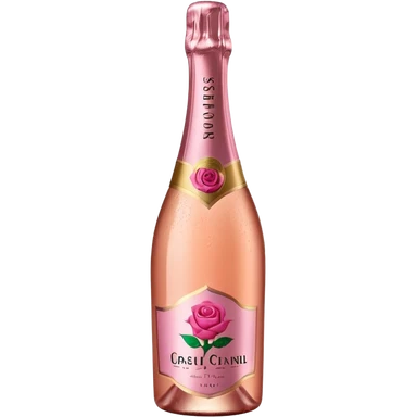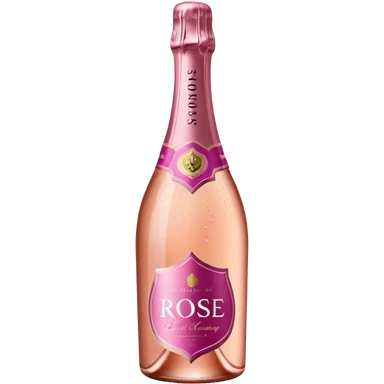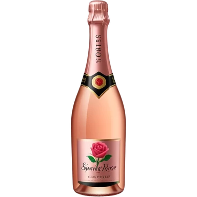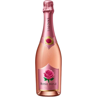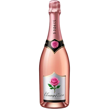 bottle of sparkling rosé champagne with a rose logo on the label, tilted up and to the right, no glass emoji