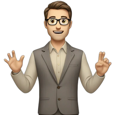 To belt Pale skinned Fit Man With the biceps and light brown hair in black shirt, gray sports shorts and white Sneakers Writing text on the flipchart emoji | AI Emoji Generator