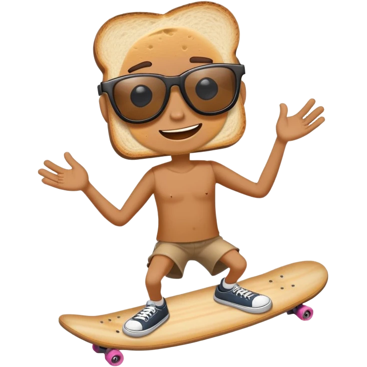 toast square sandwich with facial expressions with sunglasses and with cartoon limbs on skate emoji | AI Emoji Generator
