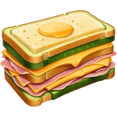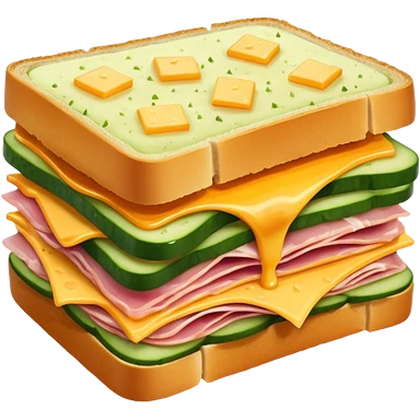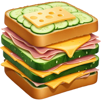 cucumber sandwich without excessive cucumber. with meat in them. bread slightly toasted. and melted cheese. make the cucumber dominant emoji