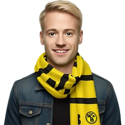 Tobias Negwer with a BVB Borussia Dortmund scarf that shows the logo emoji