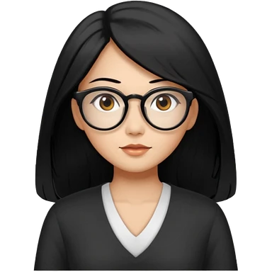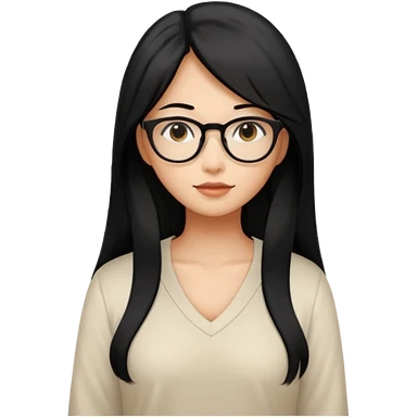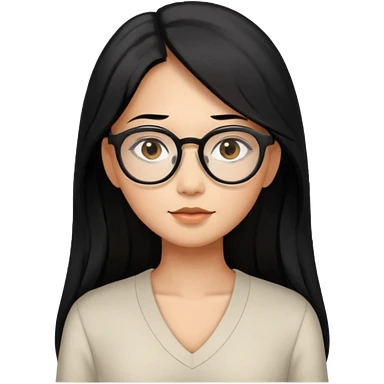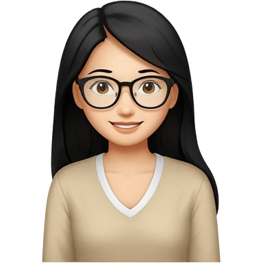 medium tan asian woman with long black hair past middle of back, round brown eyes, white v neck blouse. she has black thick frame glasses on. emoji