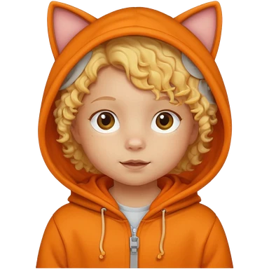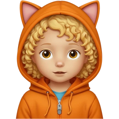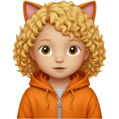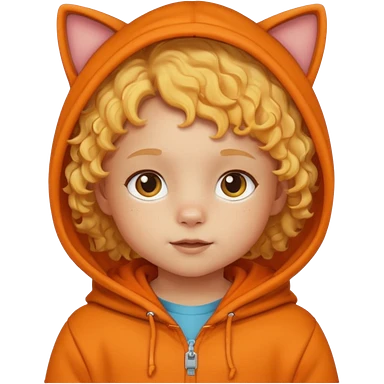 little kid Toddler in orange cat hoodie, curly blonde hair emoji