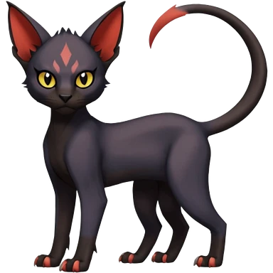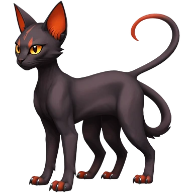 Black edgy Noivern-Litten-Sphynx-Lykoi-Caracal-cat-Fakemon full-body emoji