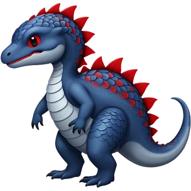 midnight blue-gray-black, with red markings, white belly, scaley Bastet-Noibat-Gatomon-Garchomp-Digimon-Fakémon-Pokémon-creature (full body) emoji
