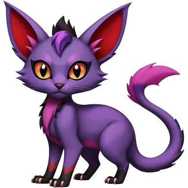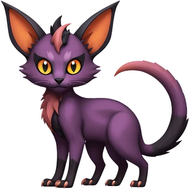 Black edgy Noivern-Noibat-Purloin-Torracat-Lykoi-Caracal-cat-Fakemon-fusion-hybrid-creature with violet and red scale markings emoji