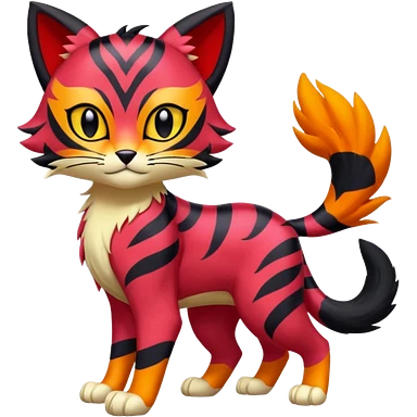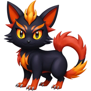 Cherry-Red and Jet-Black Fierce Fiery Mohawked Gothic Salandit-Litten-Torracat-hybrid-creature (full body) emoji