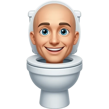 A bald person who’s very old is staring, he’s inside a toilet and his head is upright and looking at the camera with very wide eyes and a massive smile, in a very creepy way. emoji