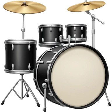 Create a bold and energetic emoji representing Ringo Starr's drum kit with two bass drums. The design should feature the iconic setup of two large bass drums positioned side by side, with snare drums, cymbals, and tom-toms arranged around them. The drums should have a sleek, professional look, with a vintage or classic finish that reflects Ringo Starr's famous style. Add subtle musical notes around the setup to symbolize rhythm and performance. Use colors like deep red, black, and chrome to emphasize the classic rock aesthetic of the kit. The background should be transparent. emoji