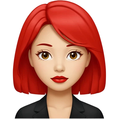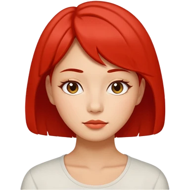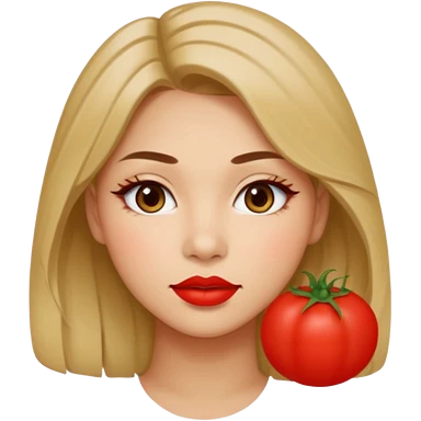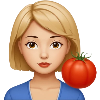 A woman in her 20s with medium hair without bangs, with double eyelids, a round face shape, with a confident look on her face. And her nickname is tomato. emoji