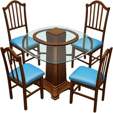 A glass topped ding table with 2 side benches and 2 thrones at the ends emoji