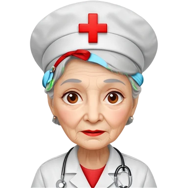old woman nurse, red cross hat emoji